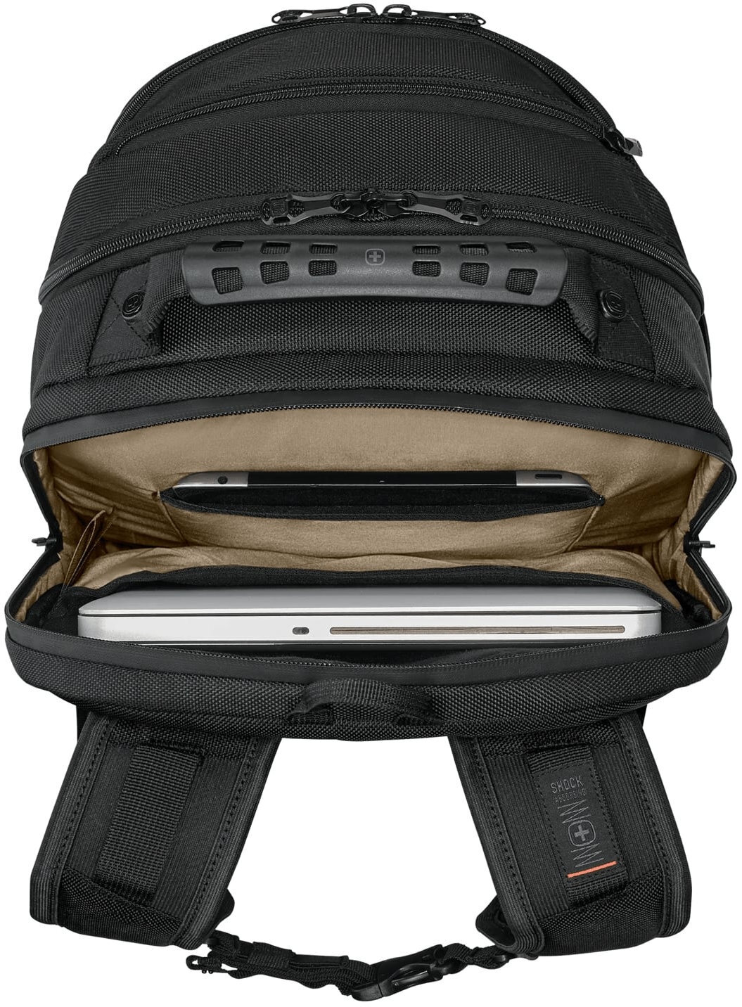 Основне відділення оснащене технологією Triple Protect — м’яким, посиленим захистом для ноутбука діагоналлю до 16 дюймів, що надійно оберігає пристрій від ударів і подряпин. Окрема кишеня зручно вміщує планшет до 10 дюймів. Ергономічна спинка Airflow з системою вентиляції забезпечує комфорт навіть під час тривалого носіння, запобігаючи перегріванню спини.