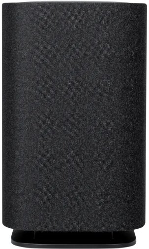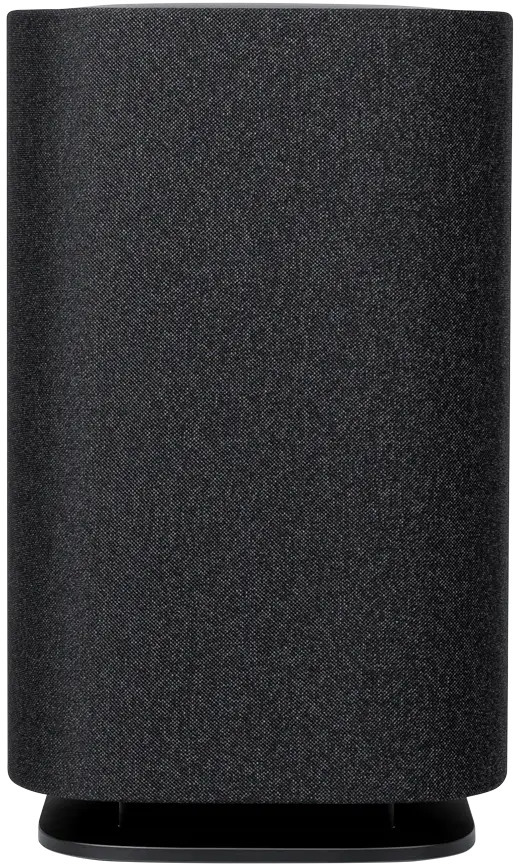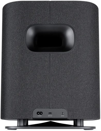 Ключова конструктивна особливість — конусний відбивач баса: динамік дивиться донизу, а розміщений під ним конічний відбивач рівномірно розсіює звукові хвилі на 360° по всіх напрямках. Результат — чистий, точний і глибокий бас незалежно від того, на якій поверхні стоїть сабвуфер, включно з м'яким килимом. Потужність виведення 100 Вт RMS при КНІ 1% забезпечує відчутний фізичний ефект при перегляді фільмів і грі у відеоігри.
