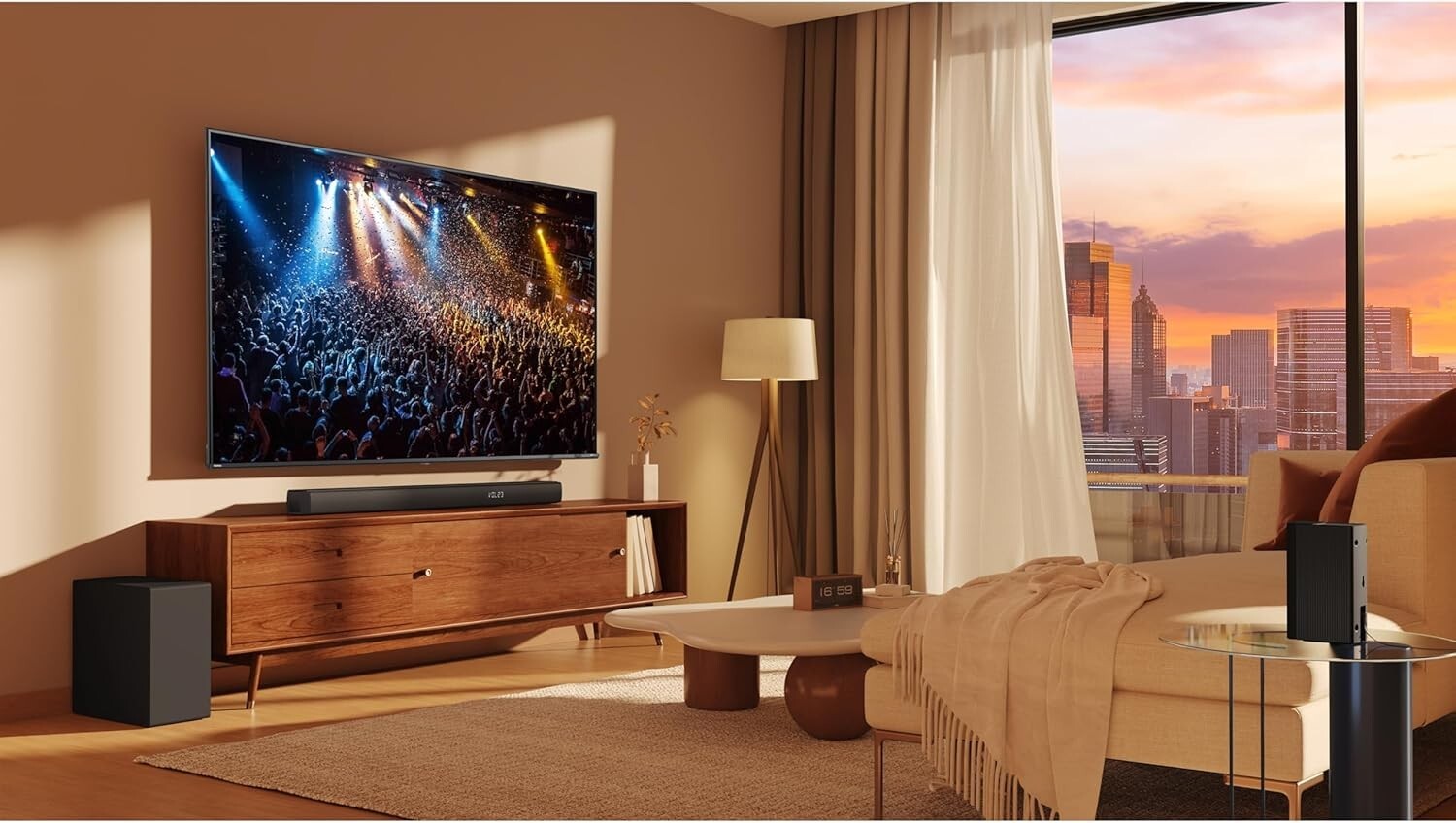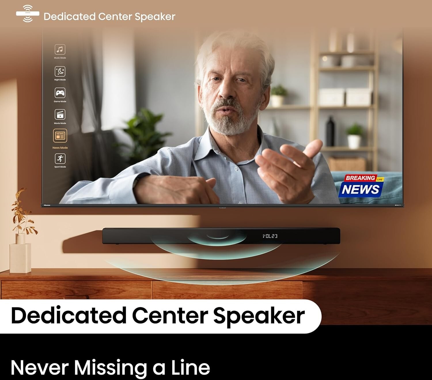 Для зручності саундбар оснащений HDMI ARC, оптичним, AUX-входами та Bluetooth, що дозволяє швидко підключати телевізори, консолі, смартфони та планшети без зайвих кабелів. Тонкий і стильний дизайн дозволяє розмістити його під телевізором або інтегрувати у будь-який інтер’єр, економлячи простір та зберігаючи охайний вигляд кімнати.