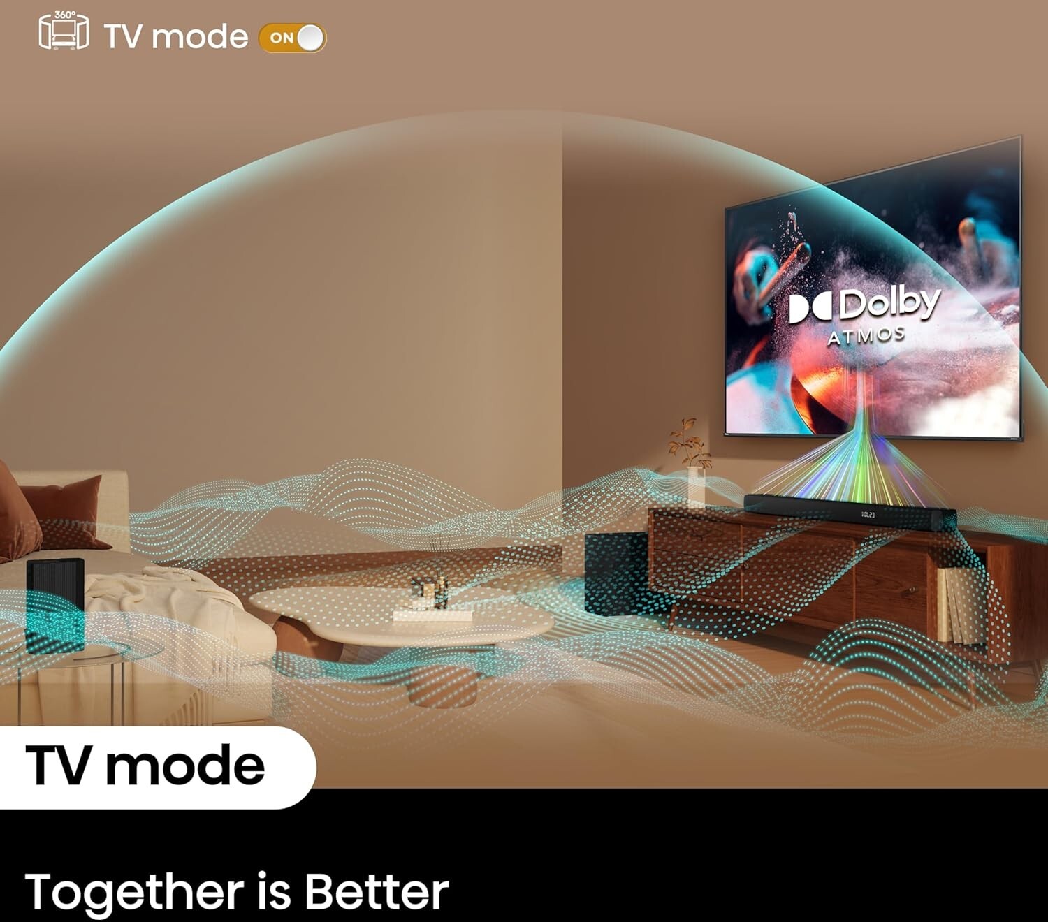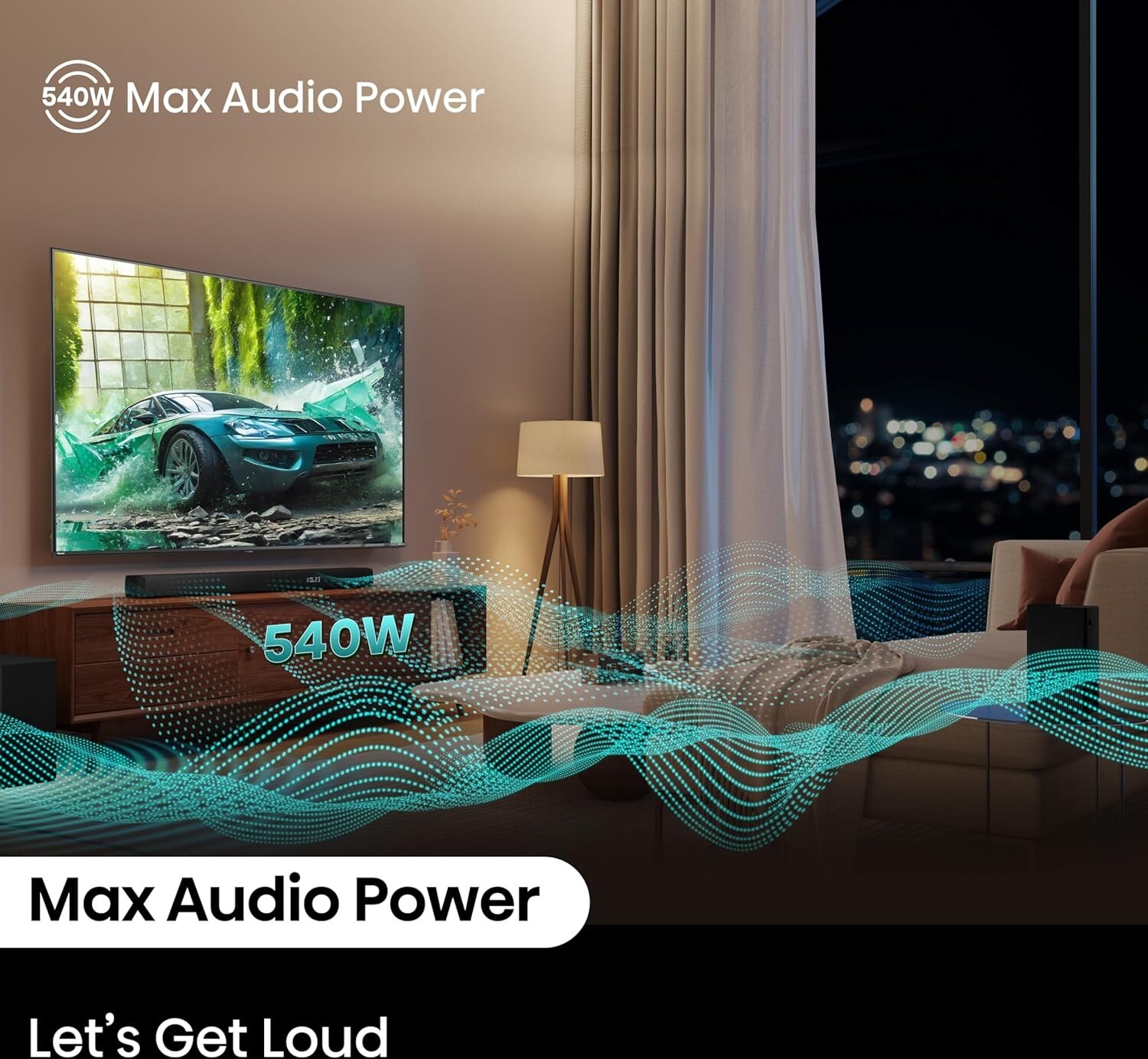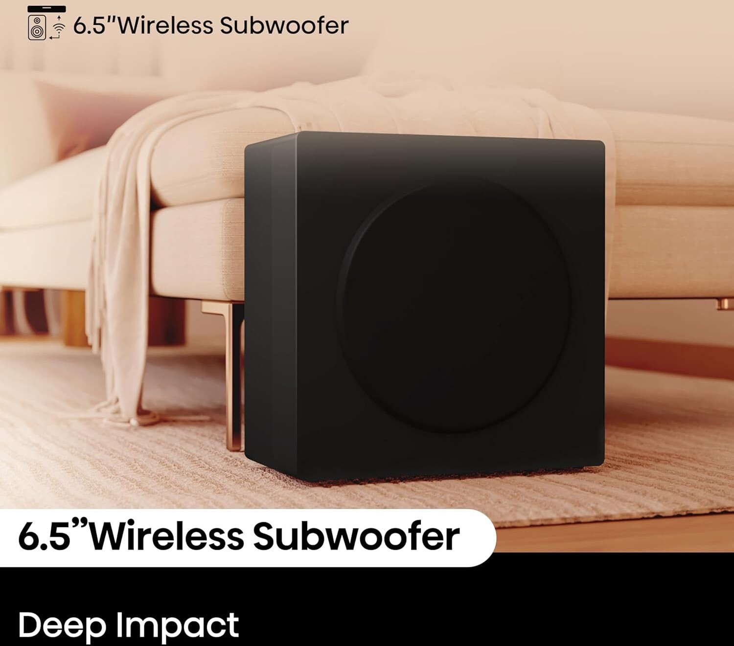 Бездротовий сабвуфер додає глибоких басів і дозволяє розміщувати його у будь-якому місці, підсилюючи динаміку музики, ігор та ефектів дії. Підтримка Dolby Audio забезпечує природний і об’ємний звук, підкреслюючи деталізацію та створюючи ефект присутності, як у кінотеатрі.