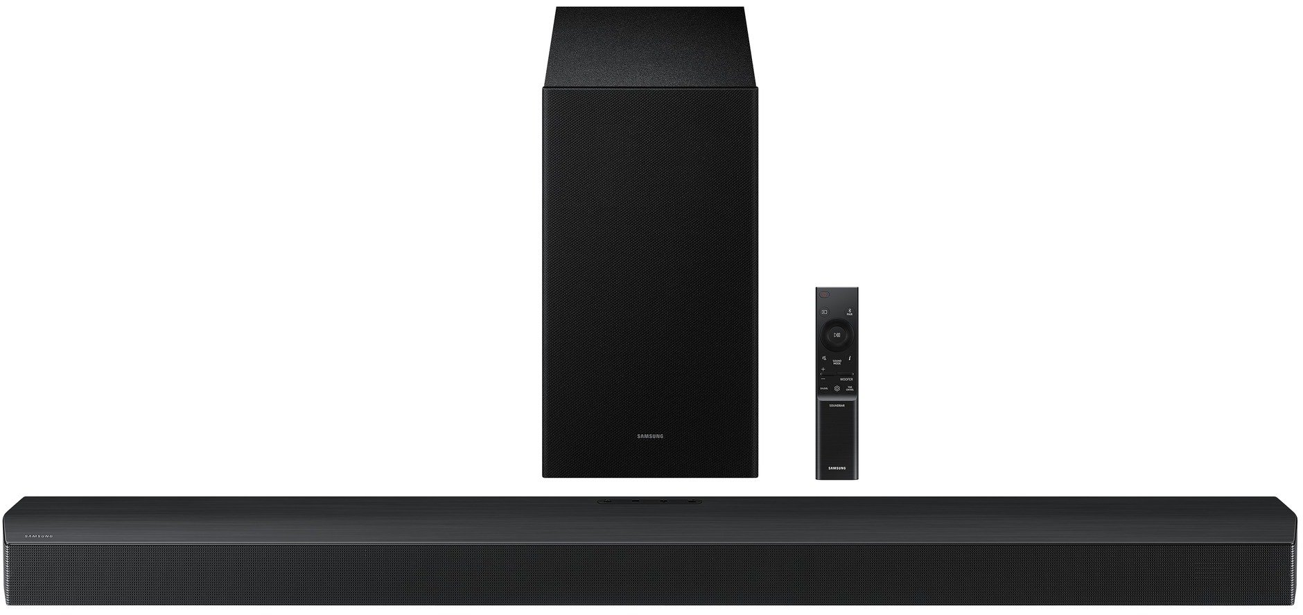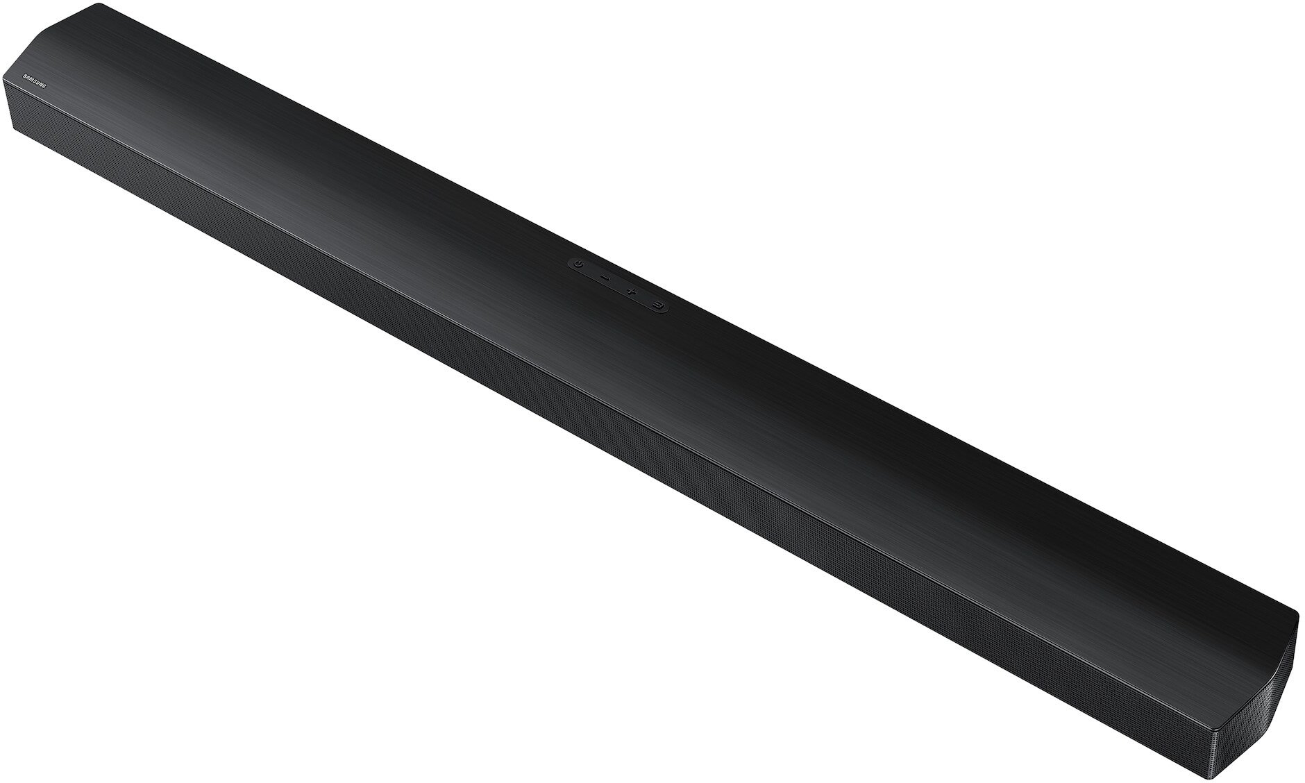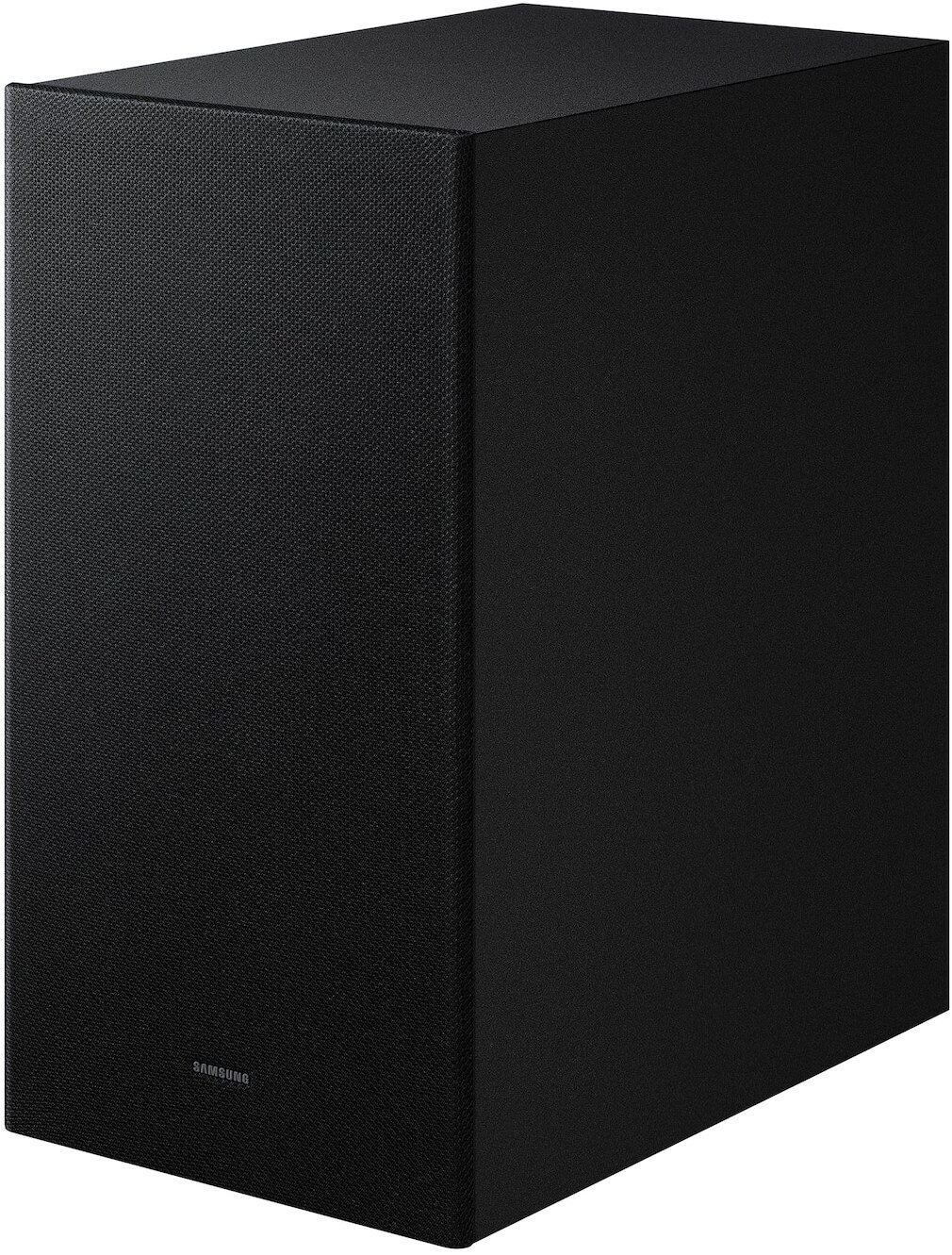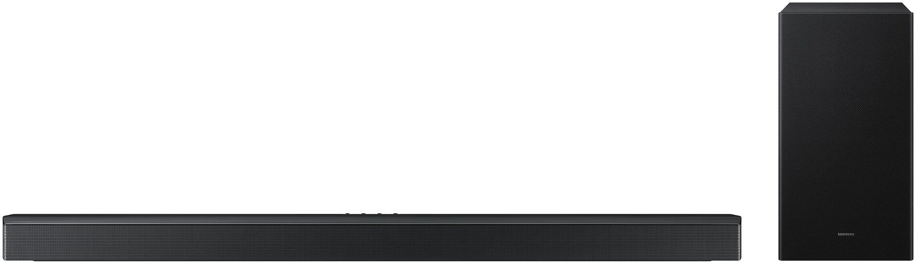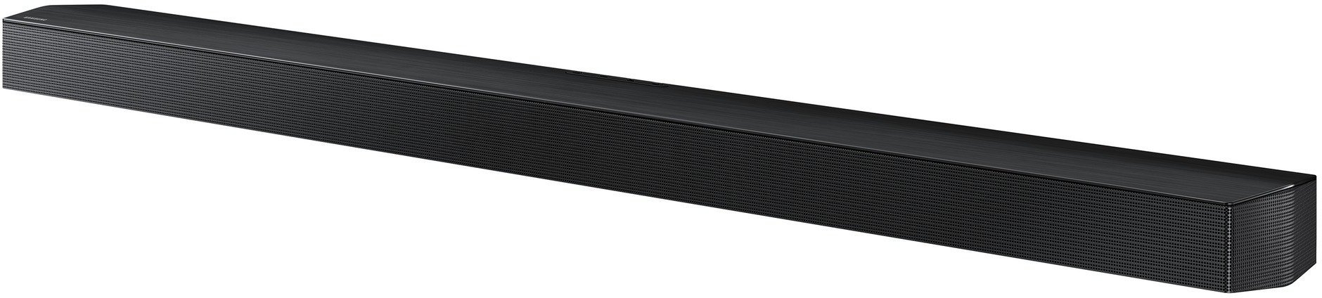 Саундбар оснащений 5.1-канальною системою (400 Вт) з бічними та центральним динаміками та бездротовим сабвуфером, що створює глибокий бас і об’ємний звук. Технології Dolby Audio 5.1 і DTS Virtual:X забезпечують 3D-аудіо, яке оточує слухача, створюючи ефект присутності без додаткових тилових динаміків. Функція Q-Symphony синхронізує звук саундбара з динаміками сумісного телевізора Samsung 2022–2025 років (BU8000 і вище), підсилюючи звучання. Adaptive Sound автоматично аналізує контент і оптимізує аудіоналаштування для чіткості діалогів і деталізації звуку. Режим Voice Enhance підсилює голоси, а Game Mode з технологією крос-толк відміни зменшує шум, дозволяючи точно визначати джерело звуку в іграх. Night Mode знижує гучність басів для тихого перегляду.