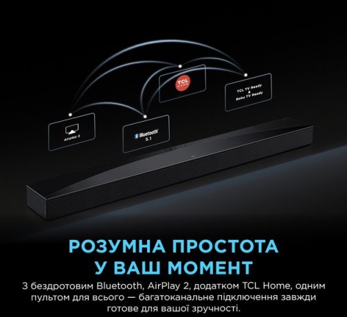 Але TCL Q85H — це не тільки про вибухову міць; його Bluetooth 5.1 з мультипойнт-підключенням дозволяє стрімити музику з телефону чи планшета без перерв, з підтримкою Apple AirPlay 2 для безшовного переходу від плейлиста до плейлиста, а HDMI eARC передає сигнал з PS5 чи Xbox Series X без втрат, ніби прозорий місток між ігровим монстром і аудіошедевром, з низькою затримкою для синхронізації звуку з дією на екрані.