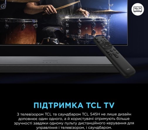Саундбар TCL S45H — це компактний, але потужний 2.0-канальний аудіоцентр, що перетворює звичайну кімнату на затишний кінозал, де кожен діалог звучить з кришталевою чіткістю, а саундтрек огортає тебе, ніби ти опинився в епіцентрі голлівудського блокбастера чи душевної мелодрами, з вбудованими драйверами, що створюють ілюзію об'ємного звуку без зайвих дротів чи сабвуфера, роблячи його ідеальним супутником для перегляду ТБ чи спонтанного марафону серіалів.