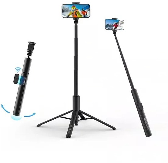 Вісімсекційна телескопічна штанга дозволяє регулювати висоту до 153 см у режимі штатива та до 152 см у режимі селфі-палиці. Тримач для смартфона підходить для пристроїв шириною від 5,6 до 9,2 см, обертається на ±90° і нахиляється на 90°, що дає змогу миттєво перемикатися між вертикальною, горизонтальною та верхньою орієнтацією зйомки.