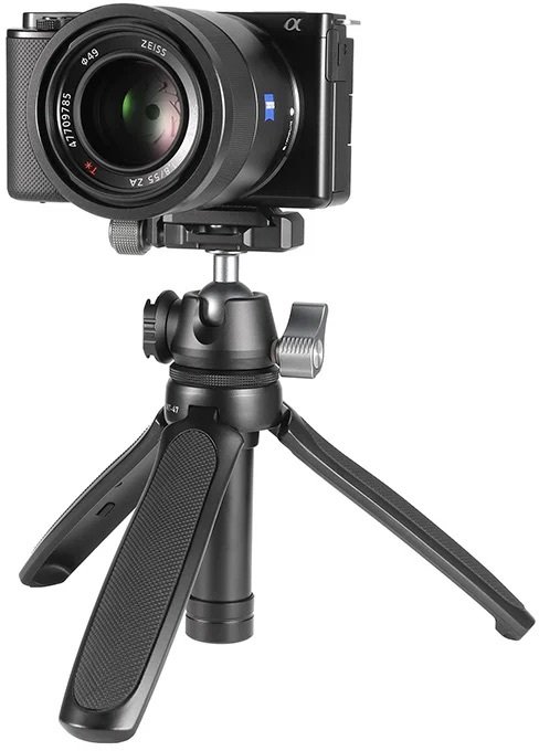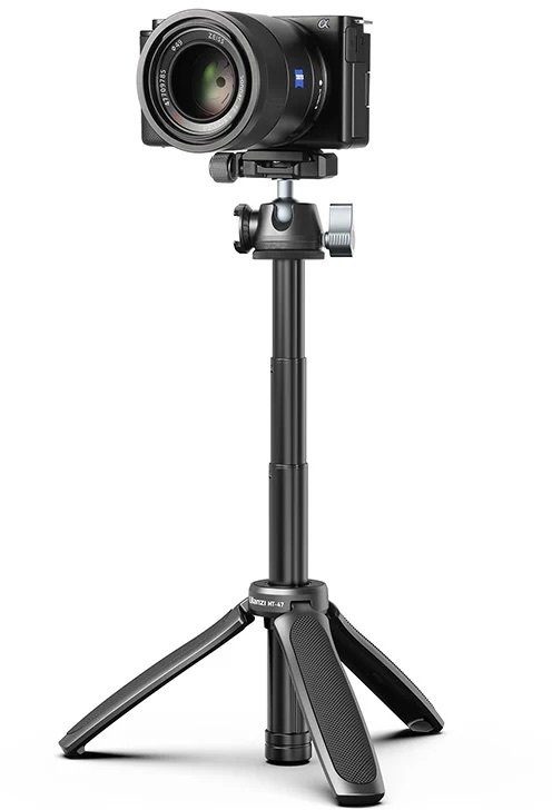 Конструкція з алюмінієвого сплаву та ABS-пластику забезпечує високу міцність при відносно невеликій вазі 328 г, що робить трипод зручним для транспортування в рюкзаку чи сумці. Шарова головка з обертанням на 360° дає повну свободу в налаштуванні кута нахилу та орієнтації, дозволяючи легко переходити від портретних до ландшафтних кадрів чи знімати з незвичайних ракурсів.