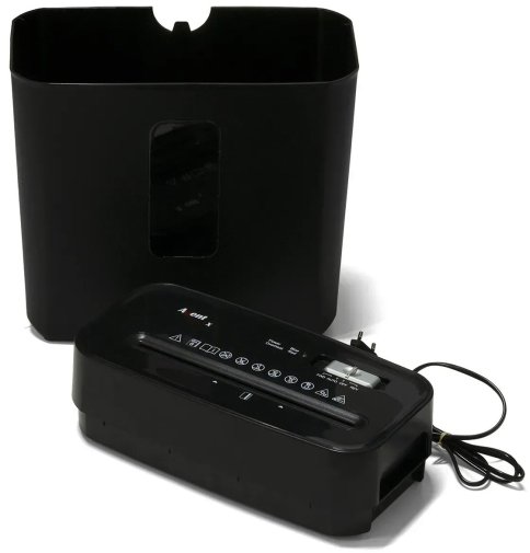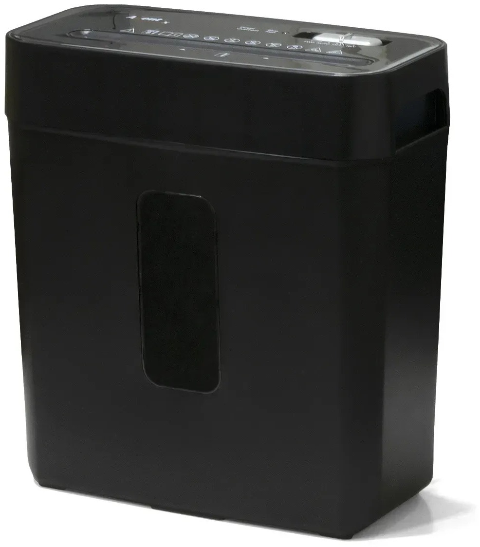 Швидкість різання становить 2.22 м/хв, а робочий цикл — 3 хвилини роботи з наступним охолодженням 40 хвилин, що є стандартним режимом для персональних знищувачів цього класу. Об'єм кошика для відходів — 14 літрів, у кошику передбачене оглядове вікно для контролю рівня заповнення без відкривання. Пристрій приймає документи, скріплені скобами та скріпками, без необхідності їх попереднього видалення, а також знищує пластикові картки — що робить його повноцінним рішенням для утилізації всіх носіїв конфіденційної інформації. Автоматичний старт та стоп вмикають шредер одразу при подачі документів, а автоматичний реверс усуває заминання паперу без участі користувача. Панель оснащена світлодіодними індикаторами перегріву, переповнення кошика, застрягання паперу та відкритих дверцят. Термозахист двигуна від перегріву та перевантажень гарантує безпечну тривалу експлуатацію.
