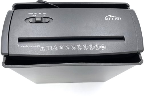 Шредер Media-Tech MT215 — простий у використанні знищувач документів, ідеальний для SoHo сегмента, який поєднує ефективність та компактність. Він відповідає рівню безпеки P-1.0-1 згідно з DIN 66399, подрібнюючи документи на смужки завширшки до 7 мм, що унеможливлює відновлення конфіденційної інформації.