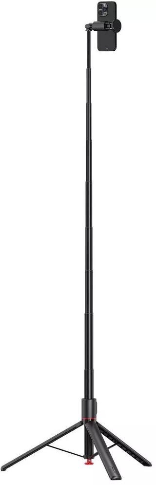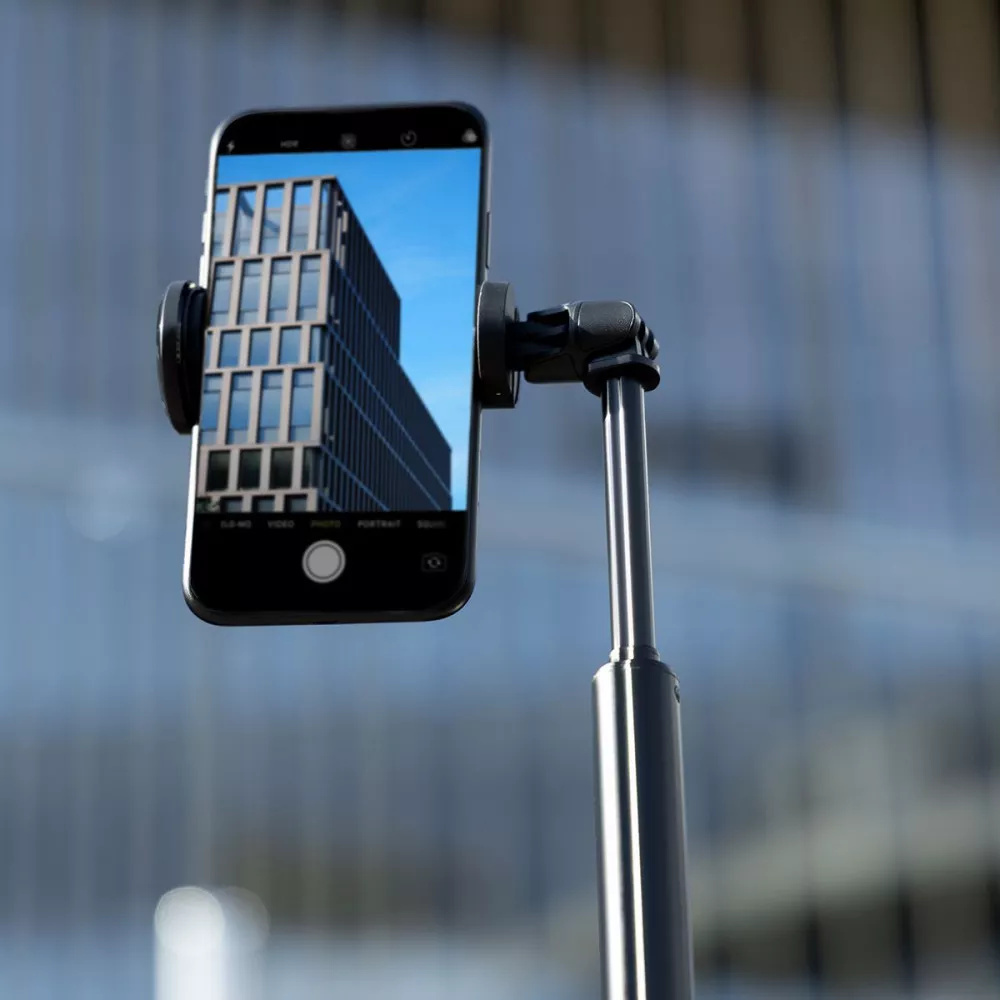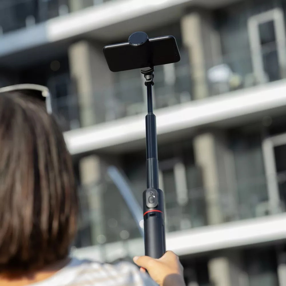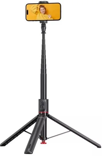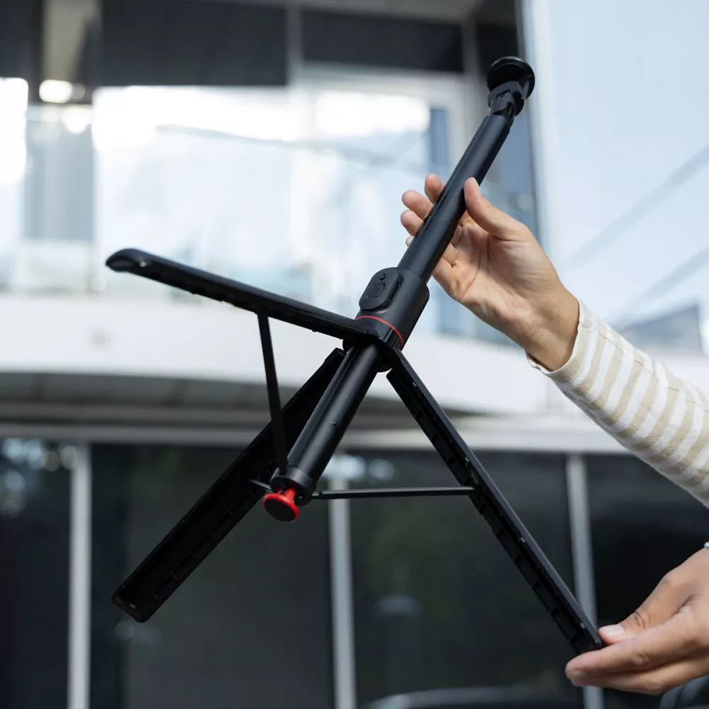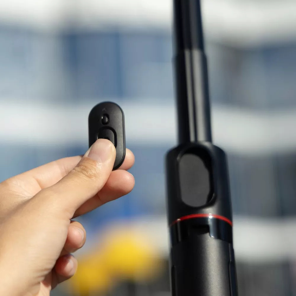Продуманий баланс ваги робить штатив комфортним навіть під час тривалих сесій фільмування. У складеному стані він займає лише 338,5 мм — без проблем поміщається в рюкзак або дорожню сумку. У комплекті — Bluetooth-пульт дистанційного керування для зйомки без дотику до телефону.