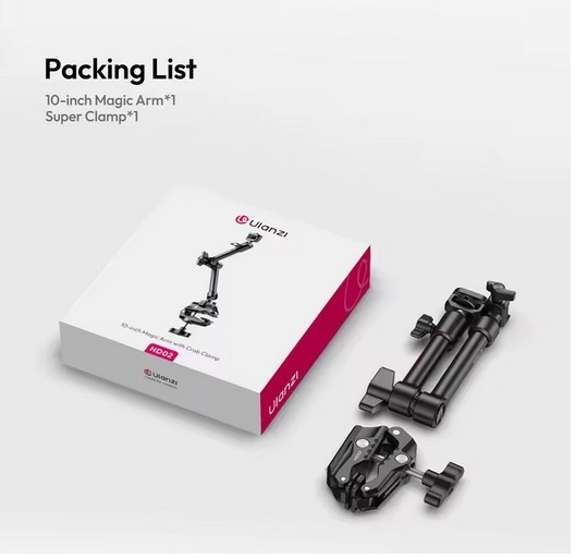 Ulanzi HD02 10-inch Magic Arm Kit (T098 HD02) — це універсальне та надійне кріплення, що підходить для різних пристроїв. У комплект входить алюмінієве кріплення краб і шарнірне кріплення Magic Arm довжиною 25 см.