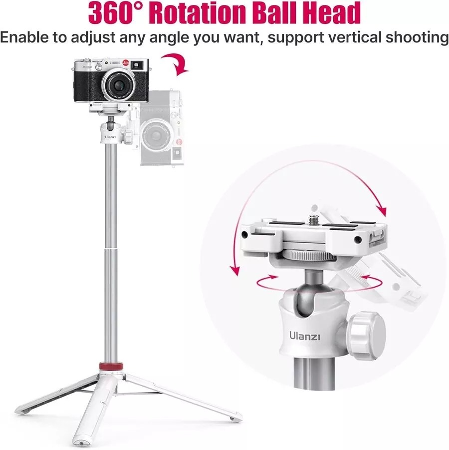 − Регульована висота. Штатив з кульовою головкою має 7 положень по висоті, що дозволяє знімати з середніх та високих ракурсів, а також покращує ракурси для портретної зйомки та блогінгу.