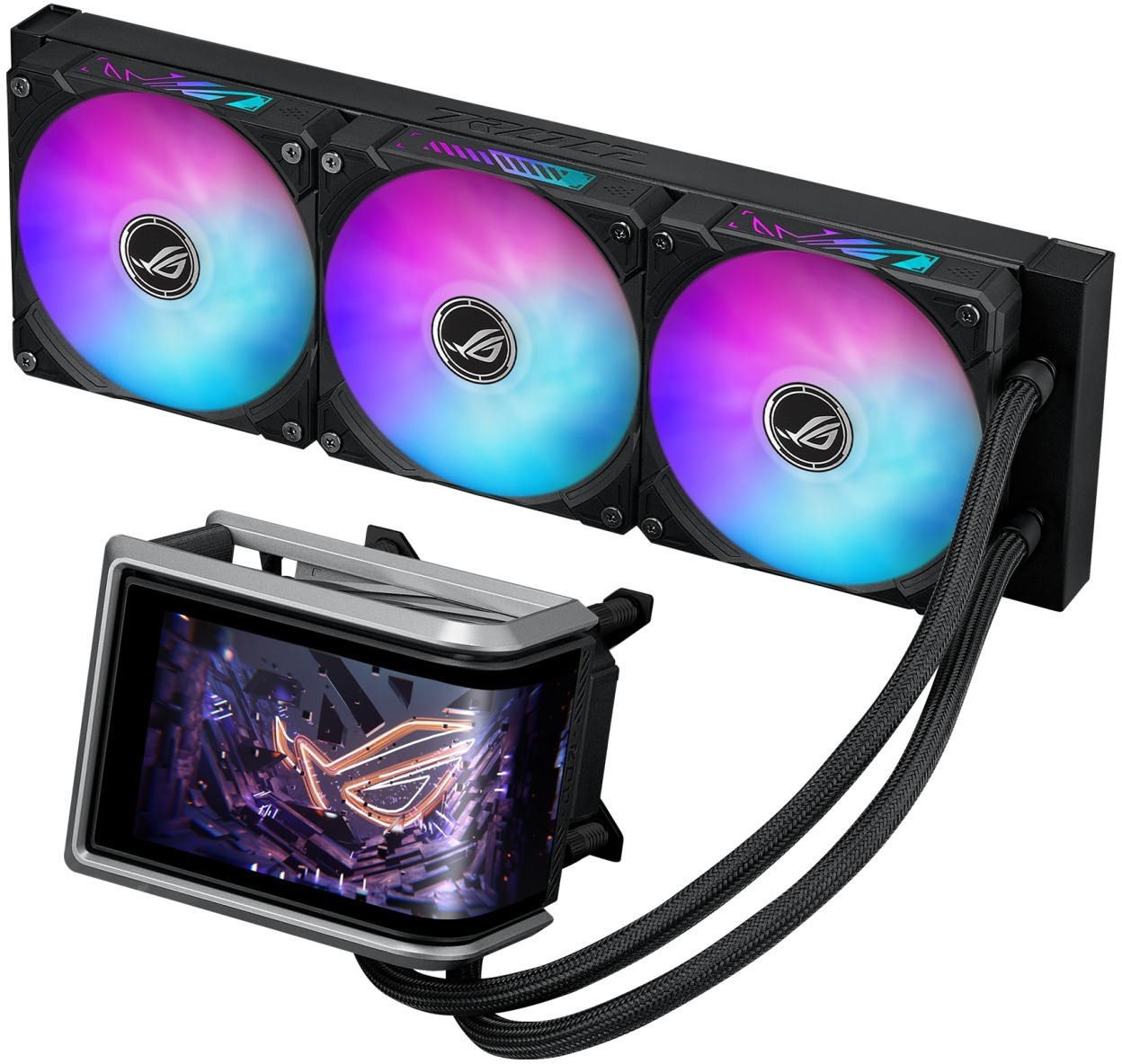ROG Ryuo IV 360 ARGB — це флагманська система рідинного охолодження від ASUS ROG, яка поєднує потужне охолодження з вражаючою візуальною естетикою. Центральним елементом є інноваційний вигнутий 6,67-дюймовий AMOLED-дисплей з роздільною здатністю 2K, що підтримує ефектні 3D-відео, персоналізований контент, GIF-анімації, реальні показники системи та навіть інтуїтивне керування ПК. Завдяки зсувному механізму дисплей можна легко позиціонувати, уникаючи конфліктів з модулями пам’яті чи компонентами материнської плати, що забезпечує ідеальний кут огляду та охайний вигляд збірки.