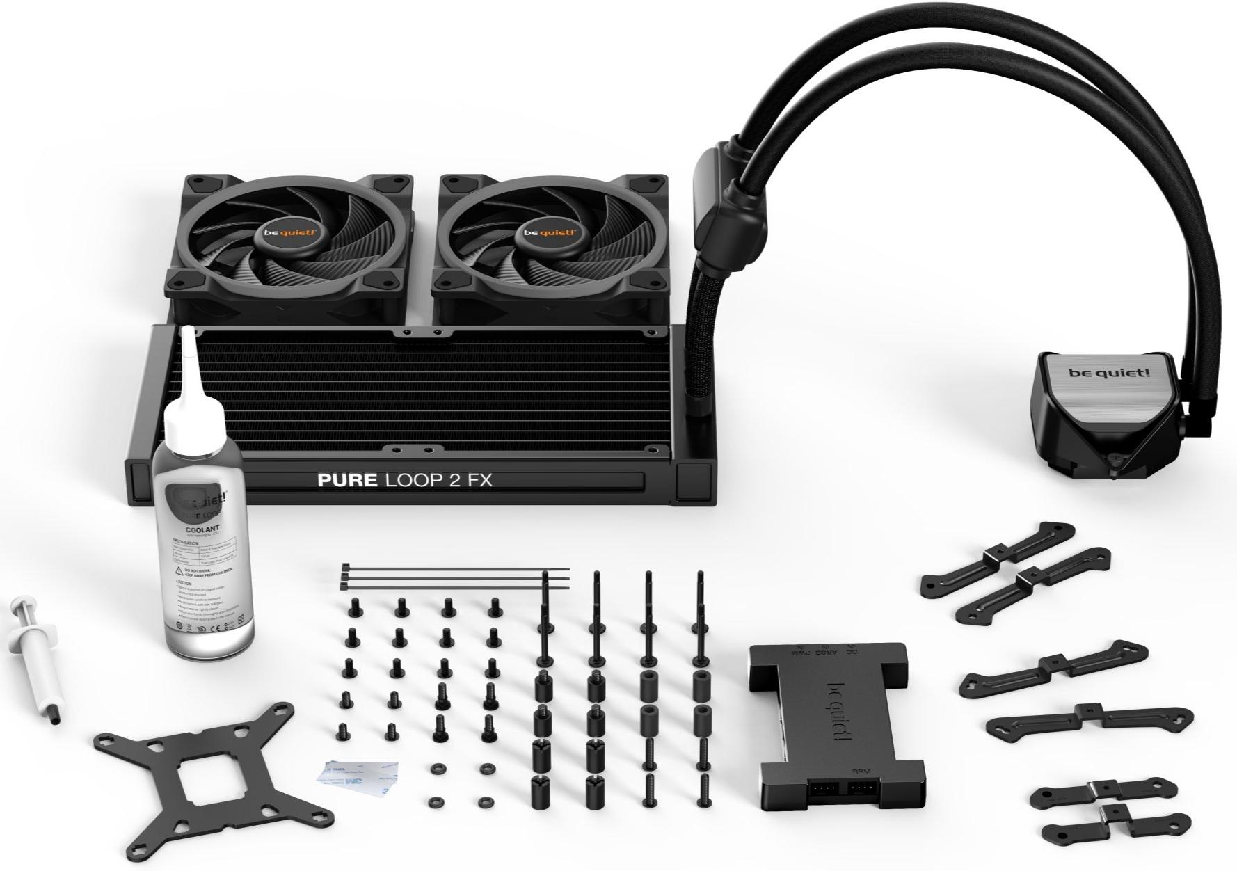 be quiet! Pure Loop 2 FX 240mm — це готова система рідинного охолодження (AIO), яка стане відмінним вибором для тих, хто шукає тихий та ефективний кулер для процесора з підсвічуванням ARGB. Модель поєднує в собі продуктивне охолодження, красиве адресне RGB-підсвічування та легендарну тишу роботи, характерну для продуктів be quiet!.