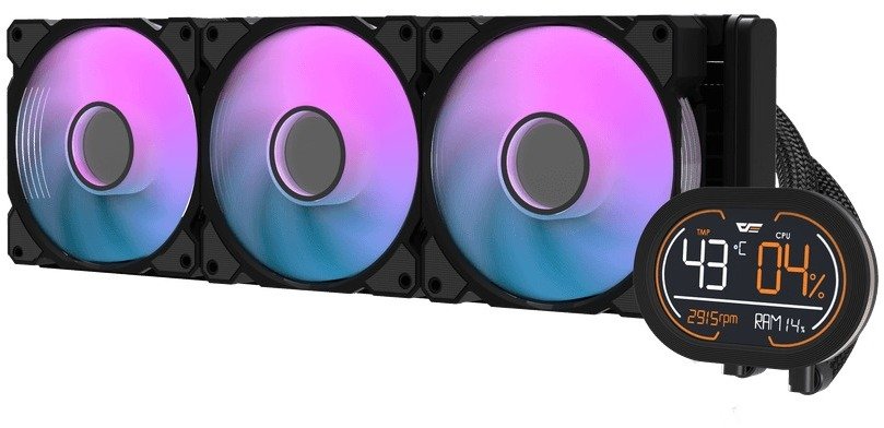 Однією з ключових особливостей DH360D є вбудований дисплей, розташований на водяному блоці. Цей екран дозволяє в реальному часі моніторити параметри системи, такі як температура, навантаження та інші показники. Насос працює в діапазоні 3200±10% об/хв при напрузі 12 В, забезпечуючи стабільну циркуляцію рідини без зайвого шуму.