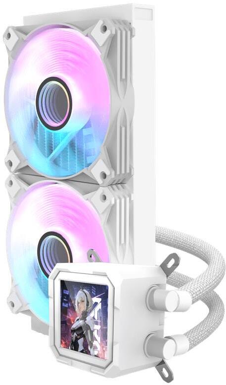 Система рідинного охолодження Dark Flash DV240S є високоефективним рішенням для процесорів, що поєднує потужне охолодження з сучасним дизайном. Ця модель типу AIO (All-In-One) оснащена радіатором розміром 240 мм, мідною основою водоблоку для швидкого відводу тепла та гнучкими трубками довжиною 400 мм, які забезпечують зручний монтаж у корпусі. Помпа працює на швидкості до 2700 обертів за хвилину, гарантуючи стабільний потік рідини та надійну роботу системи.