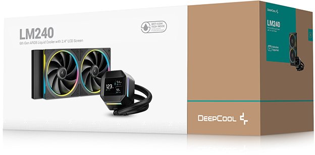 Deepcool LM240 — це сучасна система рідинного охолодження формату 240 мм шостого покоління з вбудованим компактним IPS-екраном діагоналлю 2,4 дюйма. Цей кулер поєднує ефективне охолодження з яскравими можливостями персоналізації завдяки мінідисплею, який може відображати температуру процесора, споживану потужність, час, а також відтворювати власні зображення, GIF-анімації чи навіть короткі MP4-відео. Екран автоматично оптимізує частоту оновлення при високому навантаженні, щоб не створювати зайвого навантаження на систему.