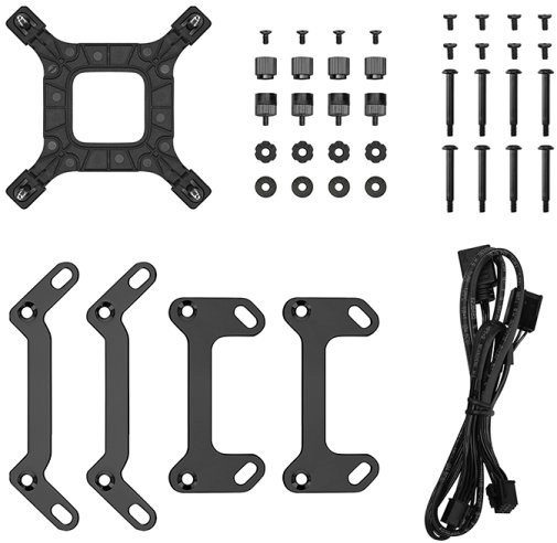 Серце системи — модернізована помпа з високою ефективністю тепловідводу та низьким рівнем шуму. Вона працює в діапазоні 2500–3600 об/хв, має розміри 90×80×63 мм і підключається через 4-контактний PWM-роз'єм. Алюмінієвий радіатор розміром 282×120×27 мм з'єднаний з помпою довгими трубками 410 мм, що забезпечує зручне розміщення навіть у корпусах середнього розміру.