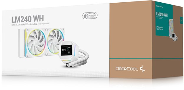 Deepcool LM240 — це сучасна система рідинного охолодження формату 240 мм шостого покоління з вбудованим компактним IPS-екраном діагоналлю 2,4 дюйма. Цей кулер поєднує ефективне охолодження з яскравими можливостями персоналізації завдяки мінідисплею, який може відображати температуру процесора, споживану потужність, час, а також відтворювати власні зображення, GIF-анімації чи навіть короткі MP4-відео. Екран автоматично оптимізує частоту оновлення при високому навантаженні, щоб не створювати зайвого навантаження на систему.