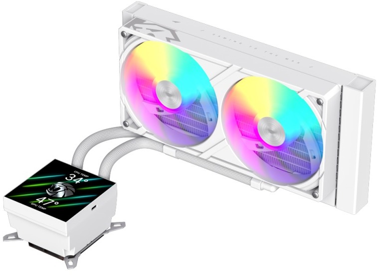 Магнітний LCD-екран з роздільною здатністю 720x720 і яскравістю 300 ніт легко знімається та обертається, дозволяючи налаштовувати теми, анімації та персональний контент. Підтримка ARGB-освітлення додає естетичного шарму, синхронізуючись з іншими компонентами. Сумісність з платформами Intel та AMD робить її універсальною для сучасних систем.