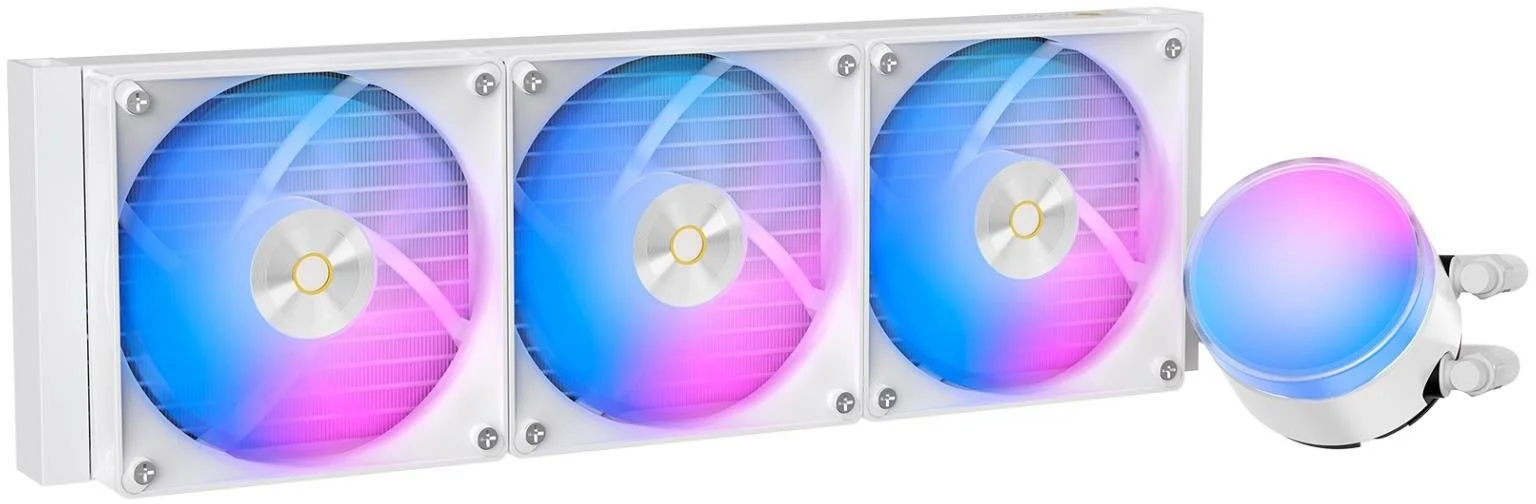 Ця модель у класичному білому кольорі з матовим покриттям базується на 360-мм алюмінієвому радіаторі з трьома 120-мм ARGB-вентиляторами, що гарантують ефективний відтік тепла від CPU з TDP до 300 Вт, перетворюючи потенційний перегрів на стабільний тепловий баланс для середньо- та високопродуктивних збірок, роблячи її ідеальною для mid-tower корпусів, де кожен цикл помпи має значення. Сумісна з сокетами LGA 115X/1200/1700/1851 для Intel та AM4/AM5 для AMD, з простим монтажем без інструментів, система встановлюється за лічені хвилини, з PWM-контролем для автоматичного регулювання швидкості помпи до 2650 об/хв і вентиляторів до 2000 об/хв, що забезпечує баланс між продуктивністю та шумом до 29 дБ.