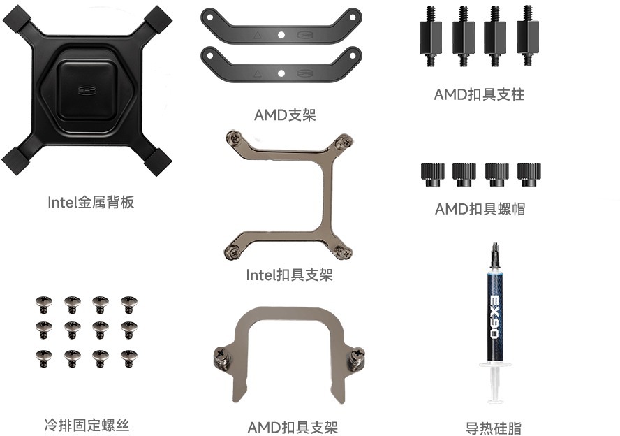 Максимальний TDP становить 300 Вт, що дозволяє впевнено охолоджувати флагманські процесори Intel Core i9 та AMD Ryzen 9, включно з моделями з підвищеним енергопакетом. Сумісність охоплює Intel LGA 1851/1700/1200/1151/1150/1155/1156 та AMD AM5/AM4 — тобто охолоджувач підходить як для найновіших платформ Intel Arrow Lake і AMD Zen 5, так і для попередніх поколінь.