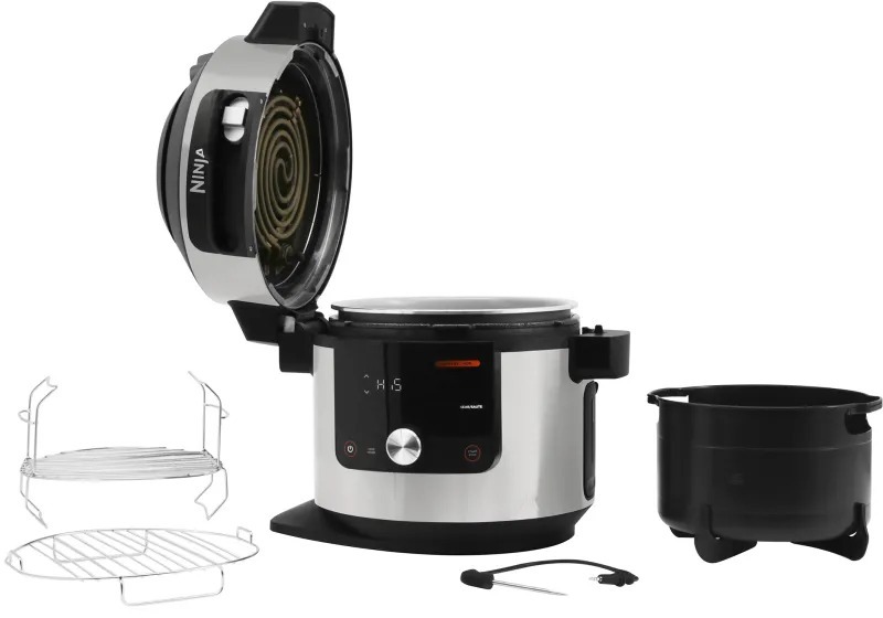 Ninja Foodi MAX 14-in-1 — це мультиварка-скороварка, створена для тих, хто хоче отримувати ресторанні результати без зайвих клопотів. Модель поєднує 14 режимів приготування, функцію Air Fry для хрустких страв без олії, розумну кришку SmartLid, а також цифровий термощуп Smart Cook, який контролює ступінь готовності страви буквально до градуса. Завдяки потужності 1760 Вт та роботі під тиском пристрій готує до 70% швидше, залишаючи продукти соковитими всередині та підсмаженими зовні.