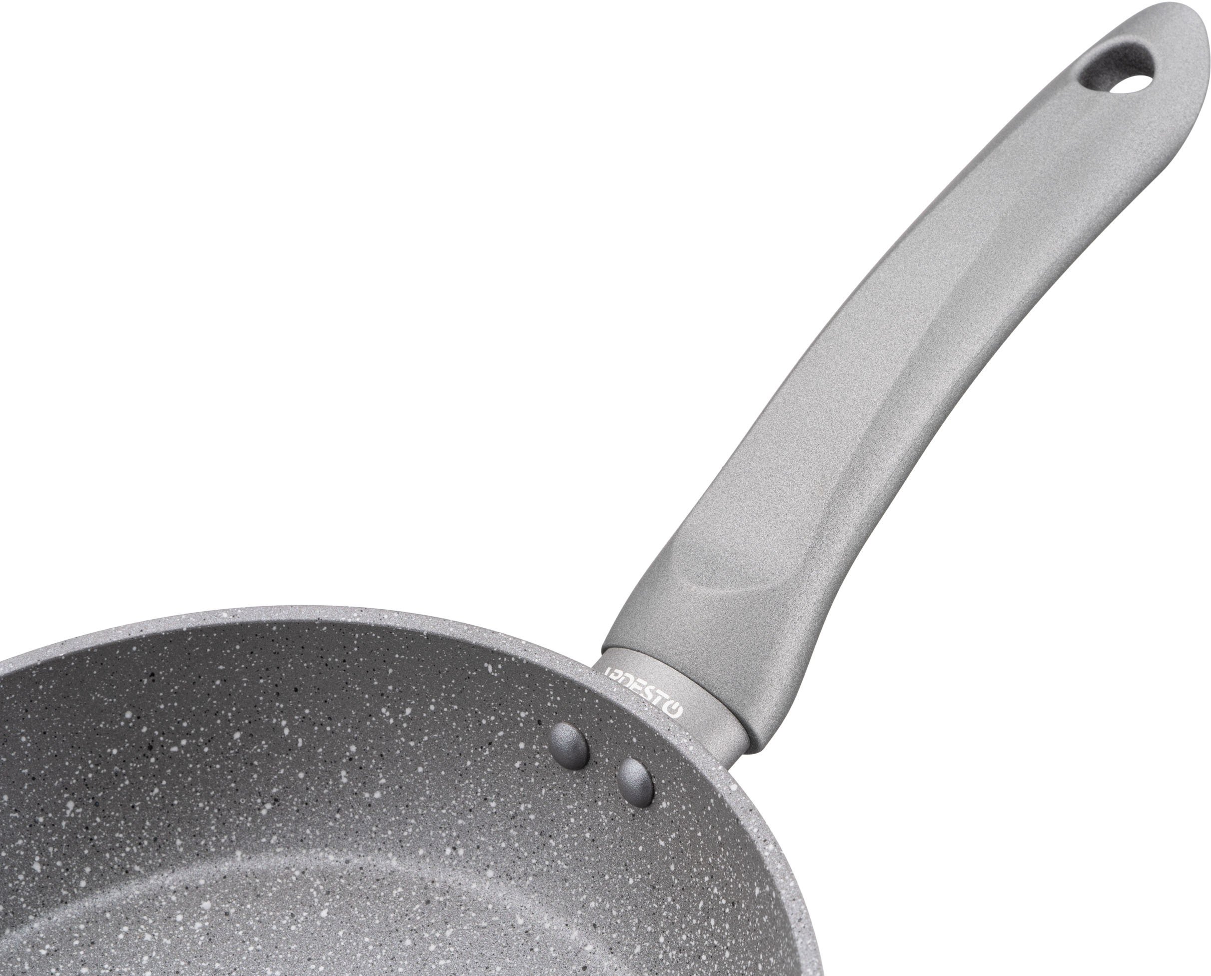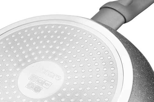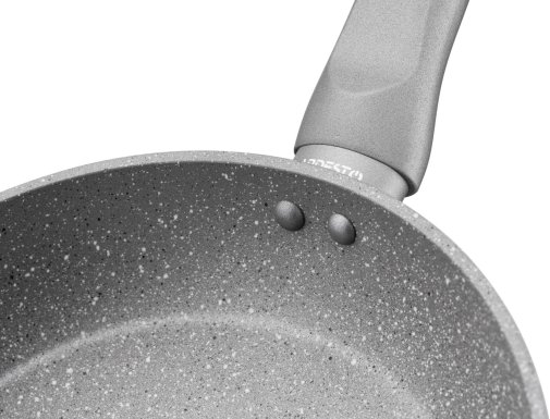 Стильна сковорода середнього діаметра з колекції Gemini Gourmet Vasto. Виготовлена з якісного кованого алюмінію з надійним мармуровим антипригарним покриттям PFLUON, завдяки якому можна готувати з мінімальною кількістю олії, а страви не пригорають і легко відходять.