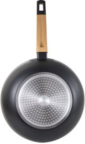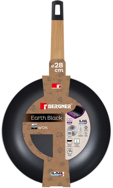 Ці сковороди оснащені преміальним антипригарним покриттям ILAG PREMIUM, яке забезпечує відмінну зносостійкість та довговічність, дозволяючи готувати з мінімальним використанням олії. Це покриття робить процес приготування легким і приємним, зберігаючи смак і якість ваших страв. Сковороди Earth Black вирізняються стильним чорним дизайном, який надає їм сучасного та вишуканого вигляду. Бакелітова ручка, стилізована під дерево, додає природного шарму та забезпечує комфорт під час використання, залишаючись прохолодною навіть при високих температурах.Ці сковороди сумісні з усіма типами плит, включаючи індукційні, що робить їх ідеальним вибором для будь-якої кухні.