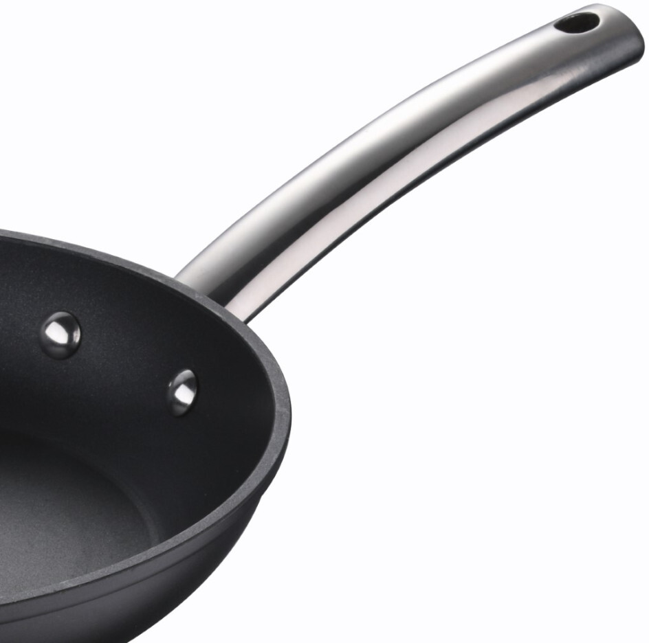 Спеціальне індукційне дно, що займає 100% поверхні, забезпечує швидке та рівномірне нагрівання, що робить цю сковороду ідеальним вибором для будь-яких типів плит, включаючи індукційні та склокерамічні. Зручна ручка з нержавіючої сталі з надійним кріпленням клепо робить використання цієї сковороди максимально комфортним.