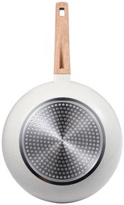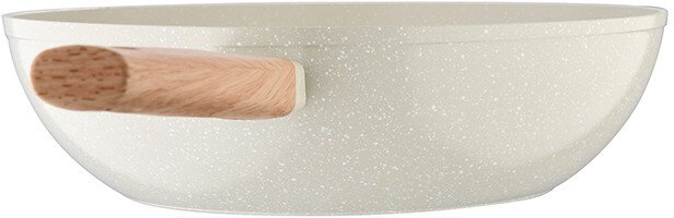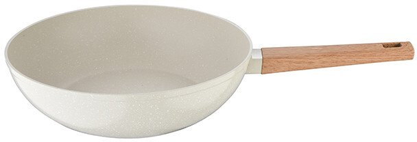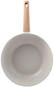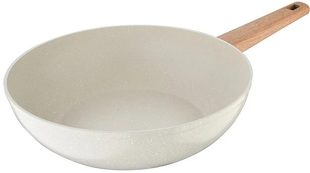 Naturally пропонує вам чудовий вок діаметром 28 см, який оптимально розподіляє тепло для ретельного приготування їжі без гарячих точок завдяки високоякісному кованому алюмінію, з якого він виготовлений. Цей унікальний матеріал має товсте дно, рівномірно розподіляє тепло від центру до країв сковороди та забезпечує високу стійкість до корозії. Вок ідеального розміру для обсмажування інгредієнтів, які не випадають. Ергономічна дерев'яна ручка з м'яким покриттям забезпечує надійне утримання вока. Насолоджуйтесь колекцією, розробленою з індукційною основою, яка підходить для всіх плит на ринку, а також її кремовим покриттям з витонченими золотими та білими крапками, які додадуть тепла вашій кухні. Легко миється, для продовження терміну служби продукту рекомендується ручне миття.
