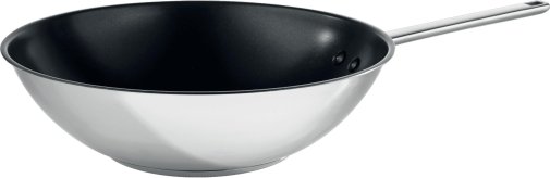Модель діаметром 30 см виготовлена з нержавіючої сталі марки 18-10, має антипригарну поверхню для зручного приготування з мінімальною кількістю олії. Підходить для всіх типів варильних поверхонь, включаючи індукційні. Дно товщиною 8 мм сприяє рівномірному нагріванню, що скорочує час приготування. Можливе використання в духовці за температур до 200 °C. Вага виробу 1,1 кг, розміри: 313 × 97 мм.
