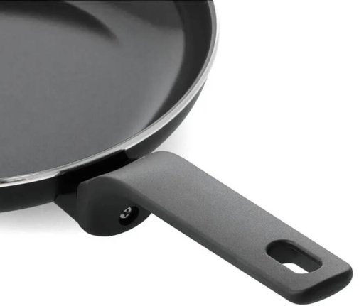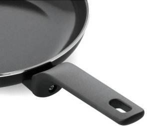 Елегантна ручка, що не нагрівається, забезпечує надійний захват і легко відкручується після використання. Завдяки цьому сковороду легше переробити.
