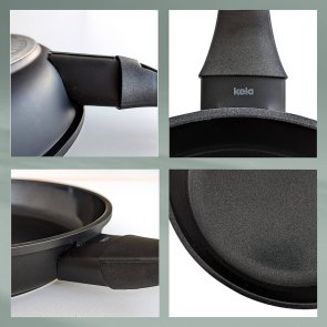 Відкрийте для себе ідеальне доповнення до вашої кухні: нашу сковороду із міцного литого алюмінію з удосконаленим двошаровим керамічним ущільненням. Ця сковорода вражає не лише відмінними результатами смаження, а й своїм складом – вона повністю не містить ПФОК та ПТФЕ.