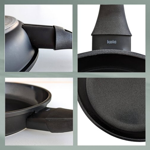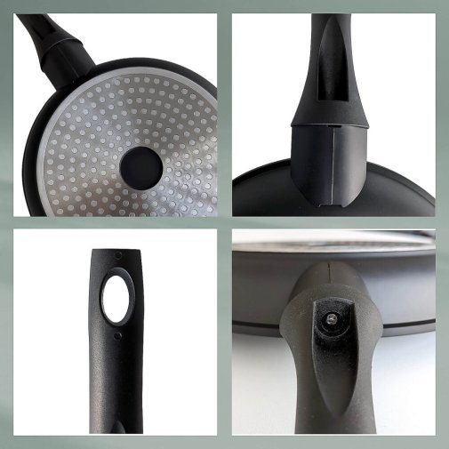 Безпечно та стабільно: ручка сковороди виготовлена з бакеліту та забезпечує високу стійкість та приємну температуру при приготуванні їжі. Отвір на кінці ручки дозволяє при необхідності зберігати підвішеною сковороду.