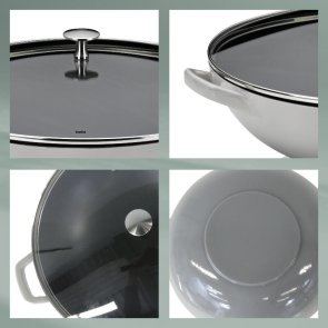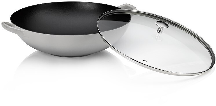 Сковорідки вок з високими стінками та маленькою площею дна спеціально сконструйовані таким чином, щоб їжу в них можна було готувати на великому вогні, часто з мінімальною кількістю жиру, або без нього, в тому випадку, коли продукти готуються при постійному інтенсивному перемішуванні. Ця технологія приготування їжі називається "stir-fry", що буквально так і перекладається - смаж перемішуючи. Продукти, приготовані за технологією stir-fry, зберігають свою соковитість, колір і більшу частину вітамінів та корисних мікроелементів. Провідний німецький виробник посуду і кухонного начиння - компанія KELA представляє сковороду вок з кришкою KELA Calido. Сковорода виготовлена з чавуну, вкритого жаростійкою емаллю. Чавун прекрасно проводить та розподіляє тепло по поверхні, що дає можливість правильно приготувати овочі, м'ясо, рибу і морепродукти за східними рецептами. У сковороді вок KELA Calido об'ємом 4 літри, за рахунок її особливої форми та розміру, вміщається велика кількість інгредієнтів, що важливо під час приготування страв азіатської кухні. Чавунний вок KELA Calido можна використовувати в якості сковороди, каструлі, казана, сотейника. Він придатний для смаження, тушкування, бланшування, пасерування продуктів, як на відкритому вогні, так і в духовій шафі.