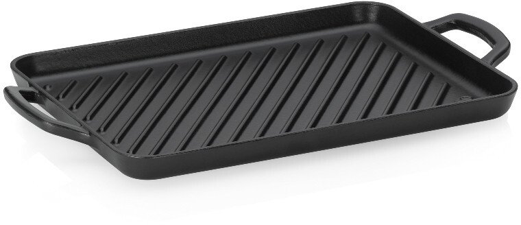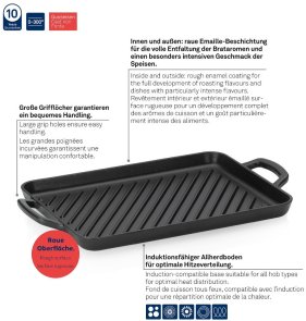 З цією чавунною сковородою-гриль готувати на грилі буде весело навіть у погану погоду. Пластина гриля шорстка всередині та покрита чорною емаллю для кращого аромату та підвищення антипригарних властивостей.