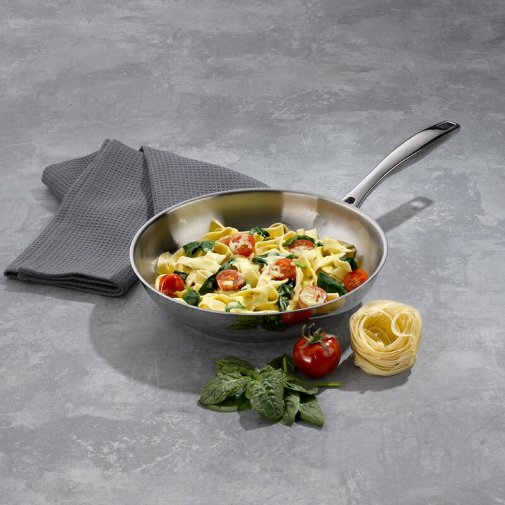 Витончена та приваблива сковорода KELA Flavoria виконана в класичному стилі з високоякісних матеріалів і практична у використанні. Виготовлена сковорода KELA Flavoria з нержавіючої сталі 18/10 з глянцевою поверхнею, тож зовсім не схильна до корозії. Ручка у сковороди KELA Flavoria має отвір для зберігання в підвішеному вигляді.