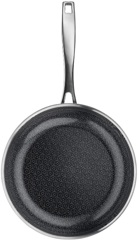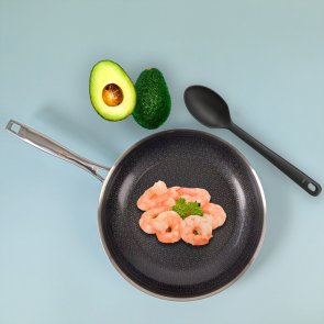 Структуроване дно покращує смаження, дозволяючи скоротити використання олії. Зручна термостійка ручка забезпечує надійне та безпечне захоплення. Сковорода легко очищається та стійка до зносу при регулярному використанні.