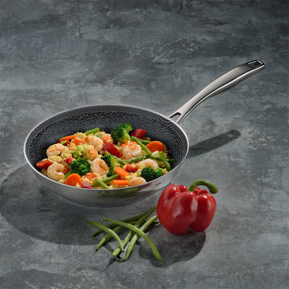 Завдяки антипригарному покриттю та рівномірному розподілу тепла їжа не прилипає і готується швидко та рівномірно.