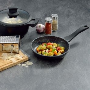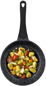 Невелика (діаметром 20 см), легка, сучасна алюмінієва сковорідка KELA Stella Nova з інноваційним антипригарним покриттям Oil Control System. З нею готувати можуть навіть ті, хто готувати зовсім не вміє.