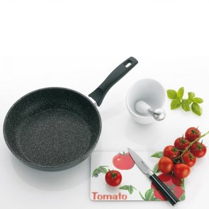Багато різновидів кухонного приладдя, які зараз мало чим примітні, свого часу були справжнім проривом. Завдяки винахідливості наших предків ми сьогодні можемо приготувати смачні і складні страви. Одним з таких проривів були колись стародавні кам'яні пательні. Камінь має багато позитивних характеристик - це тепломісткий, екологічний матеріал. Але є в нього один істотний мінус: кам'яний посуд має занадто велику вагу, тому мало підходить для застосування в домашніх умовах. Але завдяки сучасним технологіям існує відмінний компроміс - сковорідки KELA Stoneline. Вони легкі і зручні, виготовлені з алюмінію, при цьому мають інноваційне багатошарове антипригарне покриття, що імітує натуральний камінь.