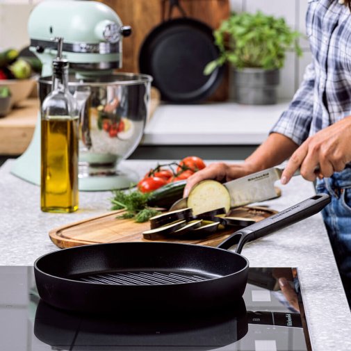 Спокійно готуйте для своєї сім'ї, знаючи, що сковорода-гриль KitchenAid не містить PFAS - шкідливих речовин, що можуть потрапити в ваші страви. Покладайтеся на безпеку та якість у кожному приготуванні.