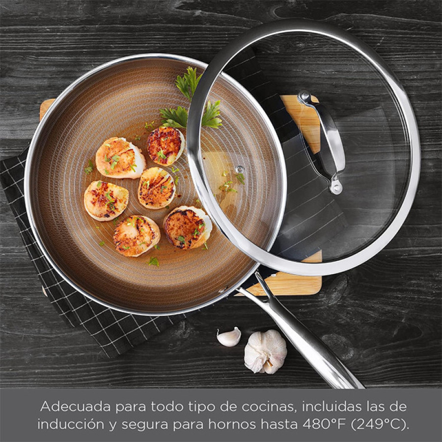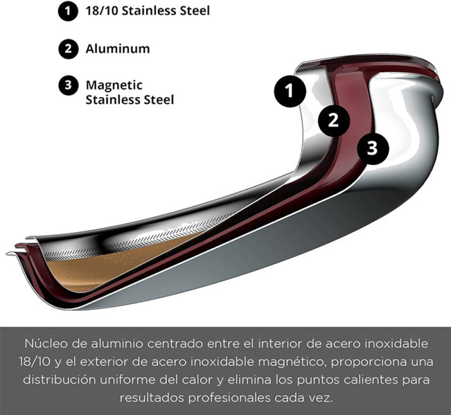 Магнітна нержавіюча сталь: Завдяки магнітному шару, сковорода підходить для всіх типів плит, включаючи індукційні, що робить її універсальним вибором для будь-якої кухні.