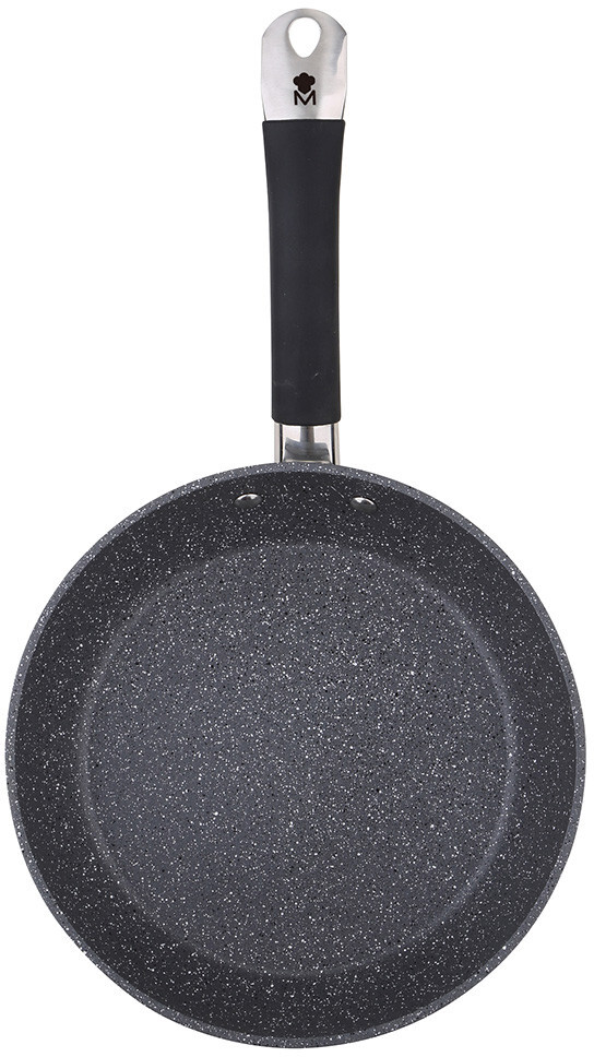 Masterpro Masterpro Home Edition - Сковорода 28 х 5 см. Це кухонний виріб, який належить до колекції Home Edition від Masterpro. Цей бренд відомий тим, що пропонує високоякісні та різноманітні кулінарні інструменти для всіх типів кухарів, а також оптимальну продуктивність в короткостроковій і довгостроковій перспективі! Виготовлена з високоякісного кованого алюмінію, що забезпечує стійкість до корозії та зносу. Цей чудовий матеріал ідеально розподіляє та підтримує тепло по всій поверхні для більшого контролю під час приготування їжі.Оснащена антипригарним покриттям Marble+, яке включає дрібні чорно-білі цятки, що надають унікальний зовнішній вигляд, антипригарне покриття, що не містить токсинів, таких як PFOA! Його ручка, виготовлена з високоякісної нержавіючої сталі, забезпечує зручне та безпечне захоплення виробу, захищеного чорним силіконовим каучуком. І, нарешті, завдяки повністю індукційному дну, можна готувати, заощаджуючи час та енергію! На додаток до сумісності з усіма наявними на ринку плитами, включаючи індукційні, рекомендується ручне миття.