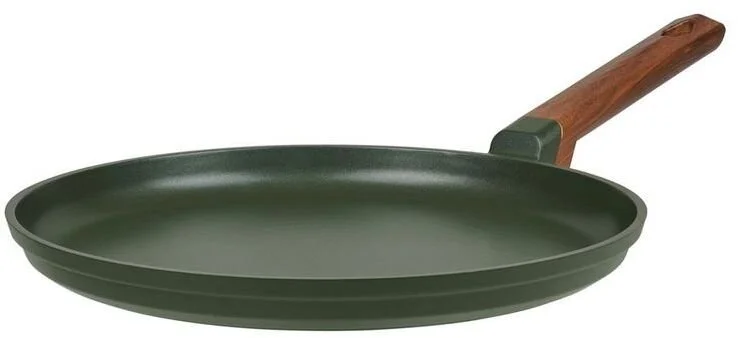 - Ергономічна ручка, стилізована під дерево, з петлею для підвішування сковороди