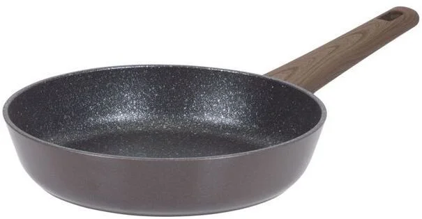 - Ергономічна soft touch ручка стилізована під дерево з петлею для підвішування сковороди