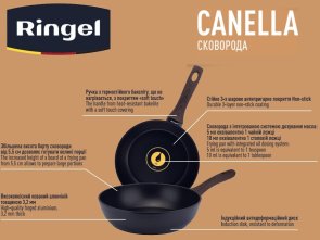 Сковорідки з колекції Canella виготовлені з високоякісного кованого алюмінію з товщиною стінки 3,2 мм і має тришарове надстійке антипригарне покриття. Це дозволяє готувати будь-які страви з максимальним комфортом, економією і користю для здоров'я, адже Ви можете значно скоротити витрати олії і жиру під час смаження.