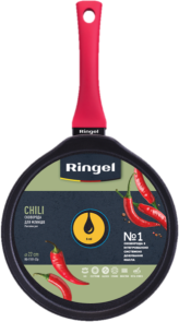 Сковороди Chili від RINGEL - це посуд, що має по-справжньому сильний характер, завдяки лаконічному дизайну і надміцному антипригарному покриттю MEGASTONE. Це покриття допускає акуратне використання, в тому числі, металевих аксесуарів протягом приготування їжі. Стандартний типорозмір сковорідок дозволяє з легкістю підібрати відповідну кришку до кожної моделі. Завдяки товстому алюмінію завтовшки 3,2 мм цей посуд ідеально підходить для приготування смачних м'ясних страв.