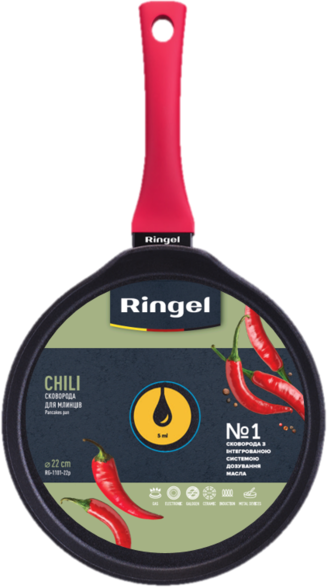 В кожну сковороду RINGEL інтегрована перша в світі система дозування олії. Найменша поділка системи відповідає 5 мл олії, а більша – 10 мл олії. За допомогою цієї системи ви зможете легко та швидко приготувати водночас здорові та смачні страви з використання мінімуму жиру та з максимальним збереженням корисних речовин у страві.