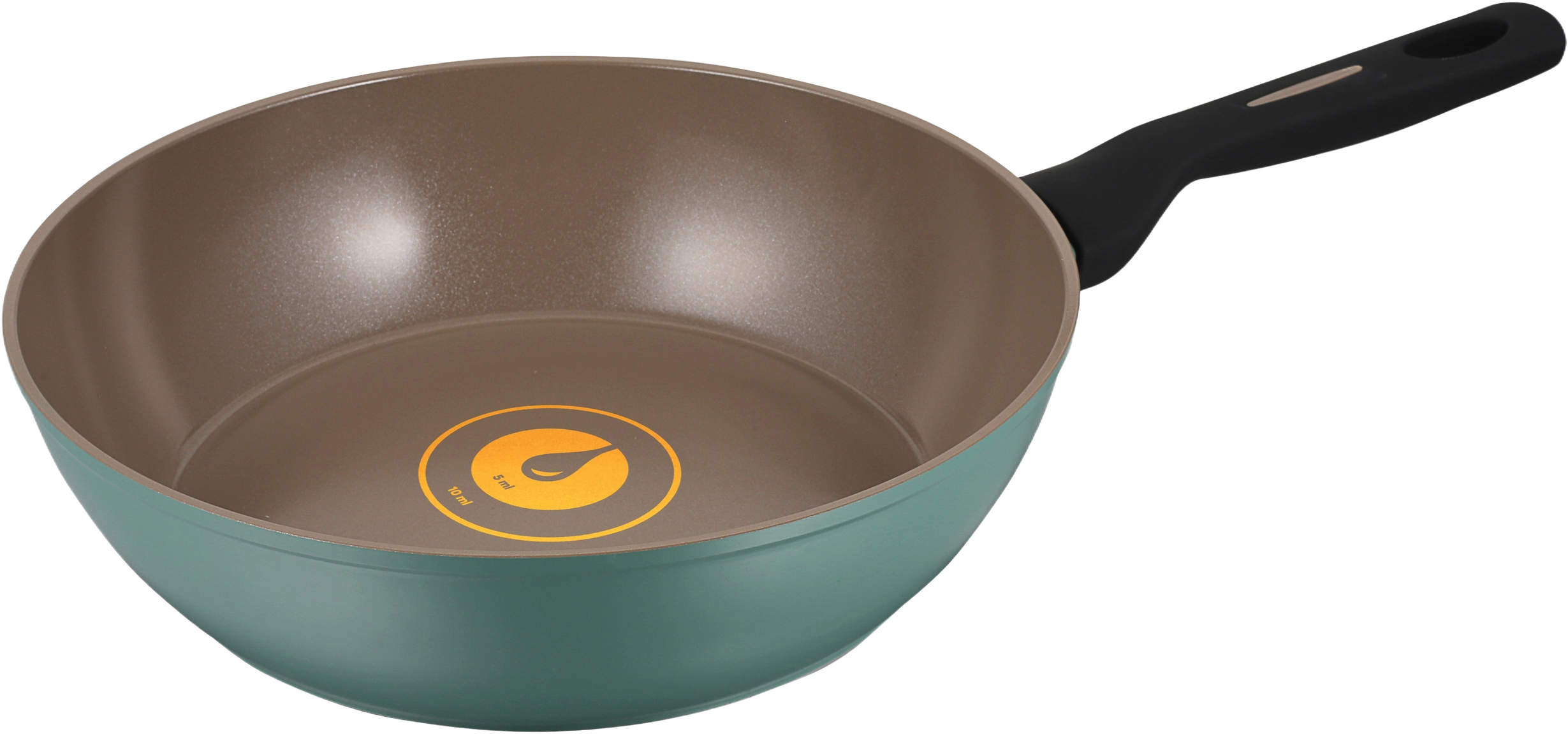 - Високоякісний кований алюміній товщиною 3 мм рівномірно розподіляє тепло по дну та швидко передає його страві