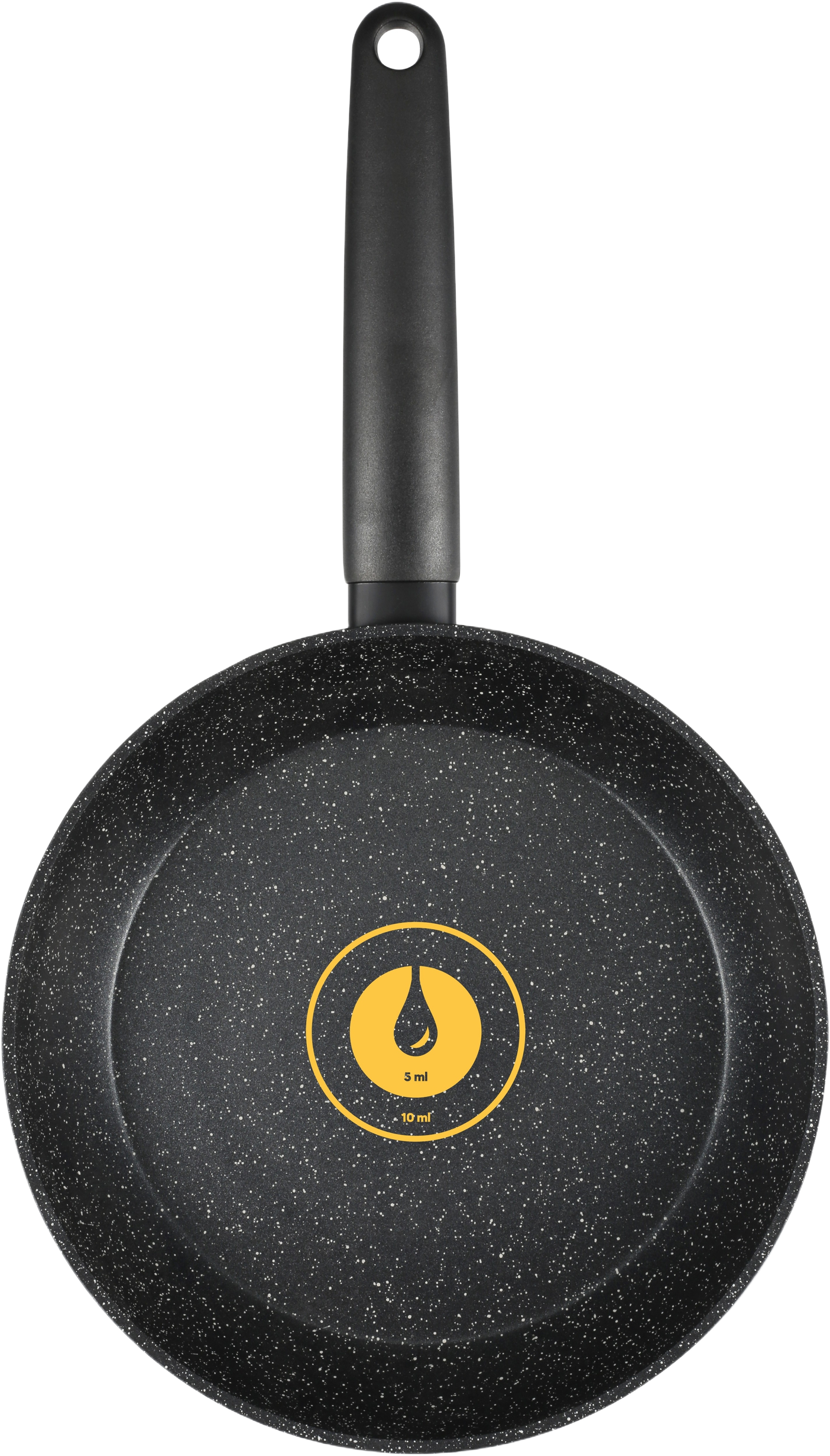 - Високоякісний кований алюміній товщиною 2.5 мм рівномірно розподіляє тепло по дну та швидко передає його страві